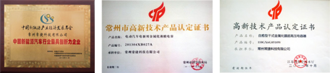 | 高新技术企业 | 工程技术研究中心 | 江苏省新能源金属化薄膜电容器工程技术研究中心 | 常州市名牌产品 |