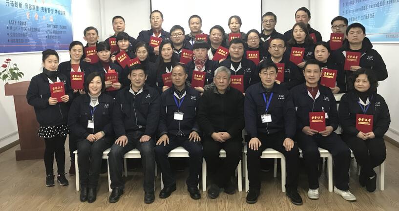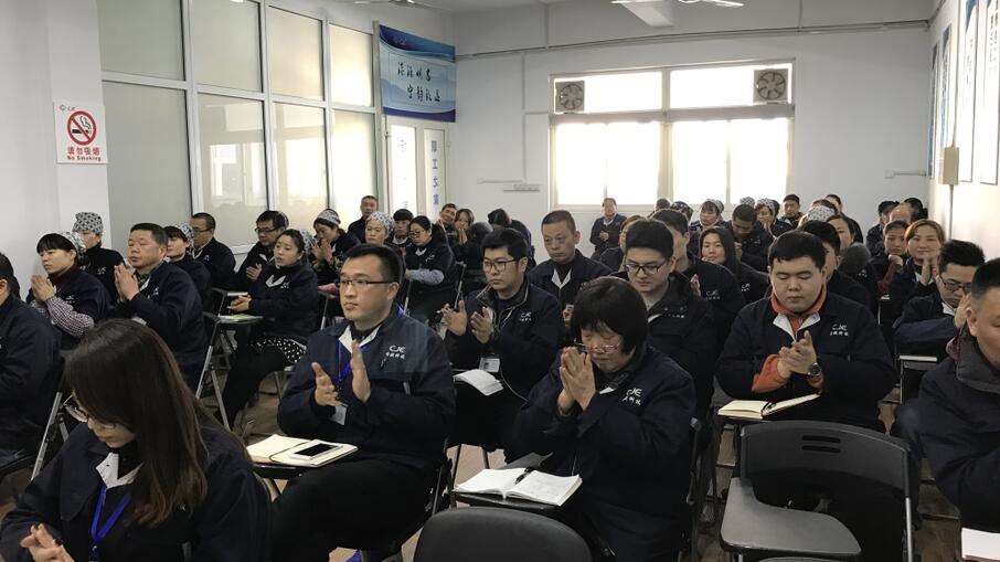 2018年2月6日下午1:00,在公司培训室成功召开了2017年度工作总结大会。全体科室管理人员、各班正/副班长、2017年度先进个人,共计八十多人参加了会议。常务副总经理梁善标、副总经理陈卫平、副总经理/副总工程师焦志勇、总工程师王凯平、总经办主任姚和民在主席台就坐。受董事长、总经理李伟锋先生委托,大会由常务副总经理梁善标先生主持,会议在和谐有序的氛围中按议程召开。